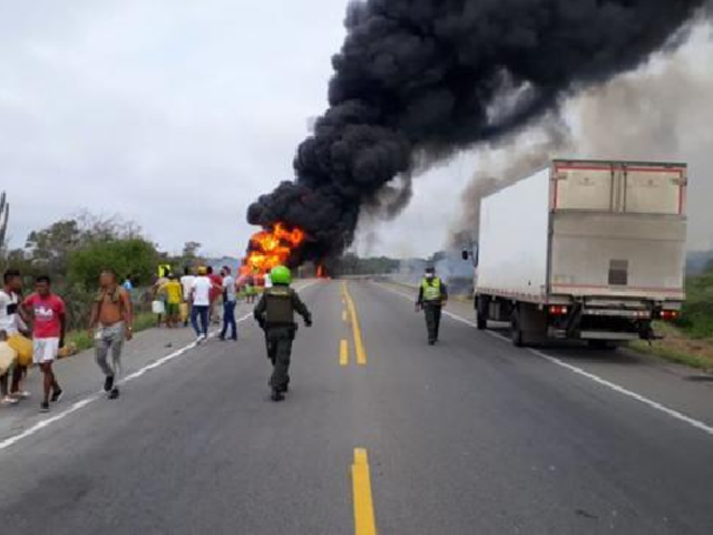 Según las autoridades, el accidente se produjo mientras decenas de personas saqueaban el camión cisterna que se había volcado cuando se desplazaba entre las ciudades de Barranquilla y Santa Marta, en el caribe colombiano.