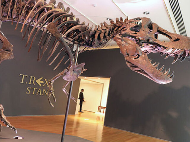 El esqueleto de un Tyrannosaurus rex que fue encontrado en 1987 y bautizado como Stan fue subastado por 31,8 millones de dólares por la casa Christie’s en Nueva York, Estados Unidos.