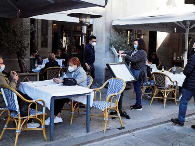 En España, hoy los camareros y los clientes volvieron a ocupar las aceras de Barcelona, luego que las cafeterías y restaurantes de la ciudad reabrieron tras la relajación de las restricciones contra el coronavirus.