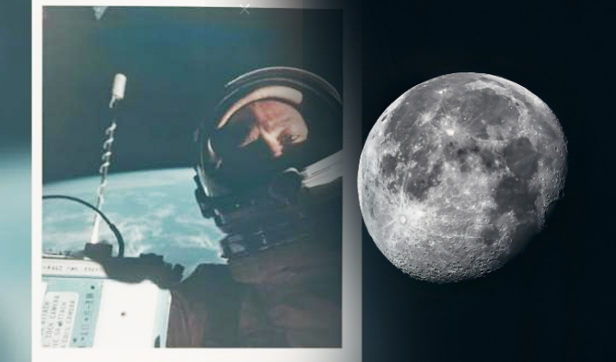 Otro de los tesoros es el primer selfie de la historia sacado en el espacio que tiene como protagonista a Buzz Aldrin con la Tierra tras él.