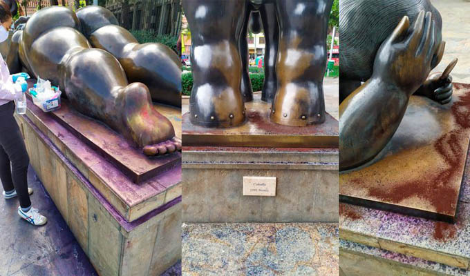 Parte de la magistral colección de estatuas de bronce donada en 2001 por Fernando Botero a Medellín, su ciudad natal, fue vandalizada con "sustancias químicas" y colorantes en polvo. Es la segunda vez que las obras del famoso artista son atacadas.