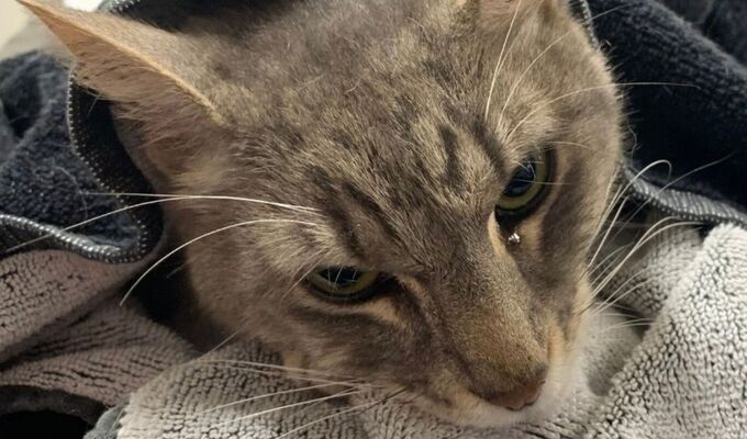 Aunque el gato acabó matando a la serpiente marrón oriental, no logró salvarse de una mordedura. Con el pasar de las horas el felino estaba echado y sin poder moverse.
