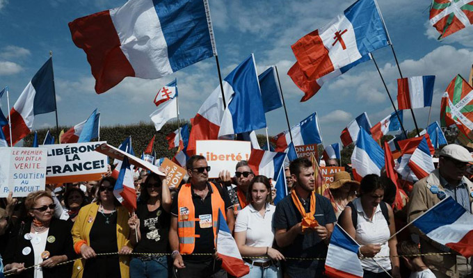 Cada sábado, desde julio pasado, protestan miembros de colectivos diversos, como los “chalecosamarillos”, militantes antivacunas, los que apoyan teorías de conspiración, asociación de jubilados y opositores al gobierno contra el certificado o pase sanitario.