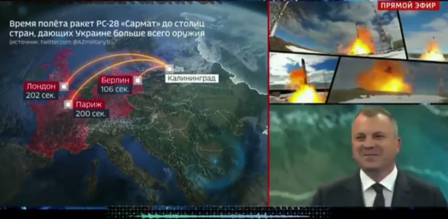 Con total parsimonia y sin ningún tipo de remordimiento. Así debatieron los conductores de un programa de televisión rusa, la posibilidad de lanzar misiles nucleares sobre las capitales europeas.
