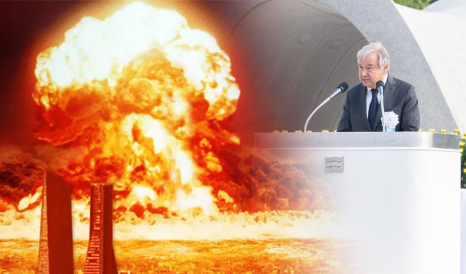 "Sólo nos separa del apocalipsis un error, un malentendido o un fallo de cálculo", dijo el jefe de la ONU en Hiroshima, en memoria de las casi 140.000 víctimas mortales del primer ataque atómico de la historia.