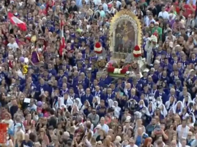 Llevando un anda con la sagrada imagen del Señor de los Milagros, un grupo de fieles peruanos vestidos con el hábito morado llegó este domingo 23 de octubre hasta la plaza de San Pedro, en el Vaticano. Aquí recibieron el saludo del papa Francisco desde el balcón Palacio Apostólico.