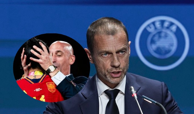 Presidente de la UEFA acusa a la prensa de exagerar caso del beso de Rubiales a Hermoso