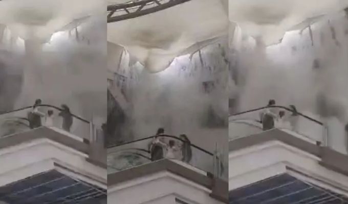 El techo del centro comercial Plaza Áuriga terminó colapsando ante el agua acumulada por las constantes lluvias registradas en los últimos días.