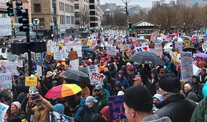 La convocatoria, lanzada bajo el lema "¡Las manos fuera!", reunió a miles de personas que se manifestaron, la tarde de ayer, en 1.400 ciudades de los 50 estados de Estados Unidos, protestaban contra la política del presidente Donald Trump y la “mala” influencia que representa para el gobierno Elon Musk.