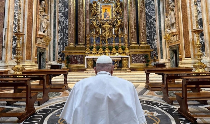 El papa Francisco sorprendió este sábado al salir de su residencia en el Vaticano y presentarse en la Basílica de Santa María la Mayor, en vísperas del Domingo de Ramos y de la Semana Santa, tras recuperarse de una grave infección respiratoria que lo mantuvo 38 días hospitalizado.
