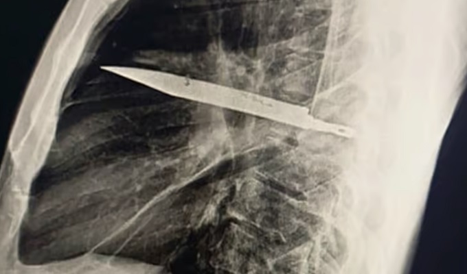 Al realizarle una radiografía reciente, los especialistas detectaron la hoja incrustada debajo del hombro derecho. A pesar de ello, el hombre nunca presentó dificultad para respirar, fiebre ni dolor torácico. Los médicos explicaron que el tejido muerto rodeó al objeto, lo que provocó la secreción de pus al exterior.
