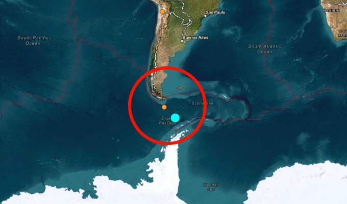 Un potente terremoto de magnitud 7,5, según el Servicio Geológico de Estados Unidos (USGS), se registró a las 22:16 hora local (02:16 GMT del viernes) en el Pasaje de Drake, entre la Antártida y el Cabo de Hornos. El epicentro se localizó a 258 kilómetros al noroeste de la Base Frei, en territorio antártico chileno. El movimiento telúrico generó dos réplicas posteriores de 5,1 y 5 grados que mantuvieron en alerta a las autoridades.