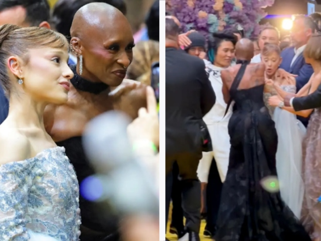 Cynthia Erivo, quien interpreta a Elphaba en la película, reaccionó de inmediato: se interpuso entre Grande y el atacante mientras gritaba, al tiempo que el equipo de seguridad reducía al intruso. Grande, visiblemente afectada, respiraba con dificultad mientras Erivo y Yeoh la sostenían y trataban de tranquilizarla tras el susto.