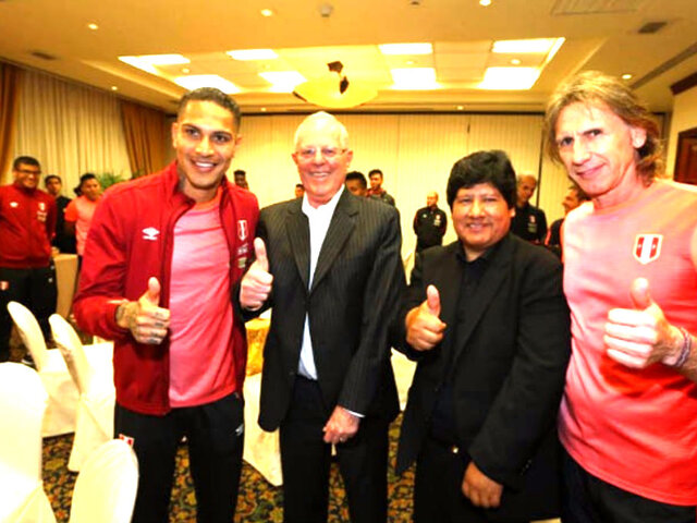Pedro Pablo Kuczynski visitó la concentración de la selección peruana para felicitar al equipo por el triunfo ante Paraguay y para dar su mensaje de aliento previo al duelo ante Brasil.