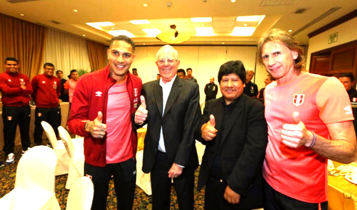 “Recuerden siempre hay que mantener viva la fe y la esperanza, y a la cancha entrar bailando y con alegría”, fue el mensaje final de Pedro Pablo Kuczynski antes de que los jugadores se enrumben hacia el Estadio Nacional.