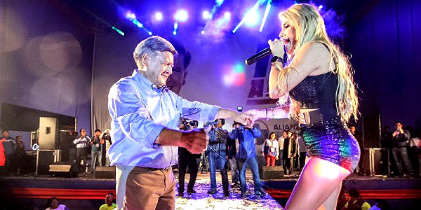 El último mitin de César Acuña tuvo como gran invitada a Yahaira Plasencia. Sí, la novia de Jefferson Farfán cantó y bailó en el aniversario 14 del partido Alianza para el Progreso. Pero ella no es la única figura de la farándula que participó de la campaña de algún candidato presidencial. En La Batería recuerde otros casos como el de Ana Kohler en los 90 con Alberto Fujimori; Tongo con Lourdes Flores Nano; Dina Paucar con Keiko Fujimori, entre otros.