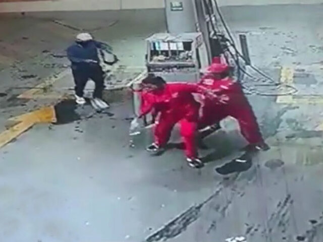 Las cámaras de seguridad de un grifo, captaron el preciso momento en que dos trabajadoras fueron víctimas de un violento asalto en Comas. El sujeto apuntó con un arma de fuego a las mujeres para que entreguen el dinero producto de las ventas del día.