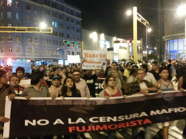 La manifestación se inició al promediar las 18:00 horas en la Plaza San Martín. Un grupo de protestantes, que llevaban pancartas y banderolas, se desvió del grupo y trató de llegar por su cuenta al Congreso de la República. Sin embargo fue impedido por la policía.