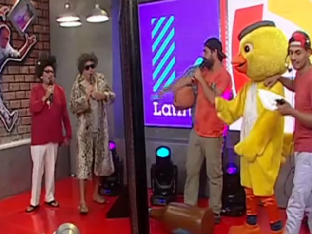 En medio del set se instaló la recordada reja que dividía los distritos de Ate y La Molina, para protagonizar esta vez el versus de canales. Pero no podía faltar la presencia del “Pollo”, que recibió más de un ‘cariño’ por parte de la producción.