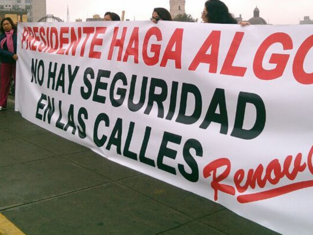 Militantes de la corriente aprista ‘Renovar’ volvieron a las calles del centro de Lima con sus pancartas en rechazo a la actual gestión. La representante del grupo colectivo, Rocío De La Pinela, exigió al gobierno que declare en 'estado de emergencia' la seguridad que se vive en el país. Asimismo recalcó que continuarán con los paneles hasta que el presidente Ollanta Humala ‘asuma la responsabilidad que le corresponde’. Cortesía Canal N.