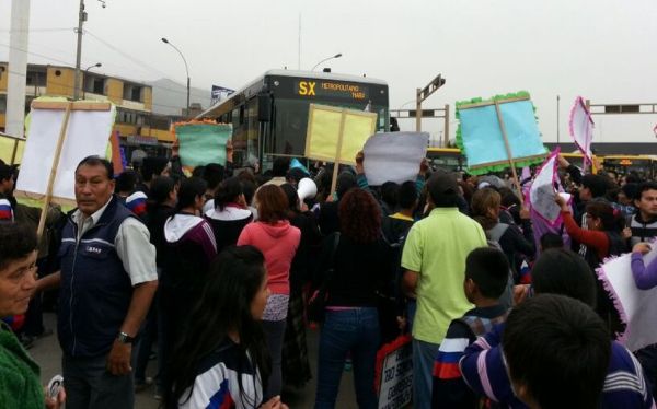 Más de cien estudiantes del colegio Gran Bretaña, ubicado en la tercera zona del sector de Tahuantinsuyo, Independencia, bloquearon la salida de buses troncales y alimentadores del Metropolitano en la estación Naranjal, generando una fila de buses varados y la molestia de los usuarios.