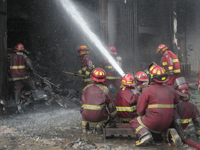 Esta mañana, el fuego en el depósito de llantas, en la cuadra 22 de la avenida Nicolás Arriola, recrudeció generando alarma entre los moradores del lugar. Los bomberos de la Compañía del Agustino se encuentran en la zona sofocando las llamas. Asimismo aseguraron que mientras el edificio no sea demolido, el fuego continuará reavivándose en reiteradas ocasiones. Cortesía Canal N.