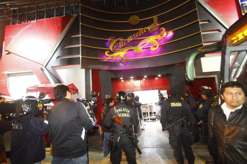 Efectivos de la Policía intervinieron esta madrugada elocal nocturno Las Cucardas, ubicado en el Cercado de Lima, en el cual detenieron a 80 mujeres que ejercían la prostitución.