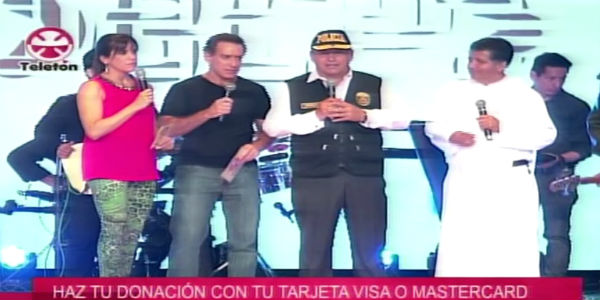 El ministro del Interior también se puso la camiseta. Daniel Urresti llegó hasta la Teletón acompañado del director de la Policía, Jorge Flores, para sumarse a esta noble causa.