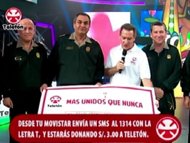 La Corporación de Oficiales y Sub Oficiales de la Policía Nacional se sumó a la Teletón 2015 e hicieron un valioso aporte de 144 mil 246 nuevos soles a favor de los niños del Hogar Clínica San Juan de Dios. Un grupo de efectivos se hicieron presentes en el Pentagonito de San Borja donde se realiza la cruzada e hizo entrega del dinero y pidió a la población sumarse a esta causa.