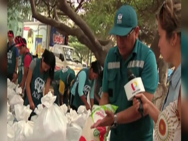 Este primer reparto de ayuda para los afectados por huaicos e inundaciones forma parte de la campaña “Juntos por el Perú”, impulsado por Panamericana Televisión y Adra Perú.