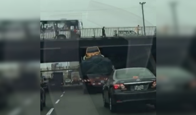 Incluso, en una parte del video se observa que el camión pasa prácticamente rozando la parte superior del puente peatonal ubicado en esa zona. El usuario que denunció el caso aseguró que esta imprudencia ocurrió a plena luz del día, pudiendo provocar un accidente.