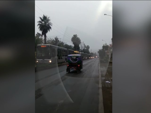 En el vídeo enviado a la central de noticias de Panamericana Televisión vía WhatsApp se evidencia la larga fila de buses que quedaron atrapado en el canal de circulación.