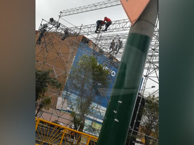 Sin ningún tipo de protección y violando las normas de seguridad, fueron captados un grupo de trabajadores armando una estructura de andamios en la avenida Brasil, específicamente en la cuadra 29, del distrito de Magdalena.
