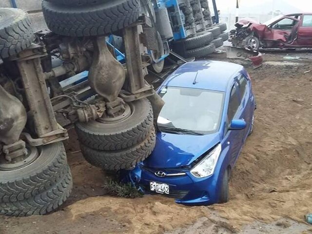 Según testigos, el station wagon de color blanco, que conducía la víctima mortal, habría invadido el carril donde circulada el pesado vehículo. Los autos con placas de rodaje F1G-462 y F2N-369 fueron dos de las cuatro unidades afectadas.