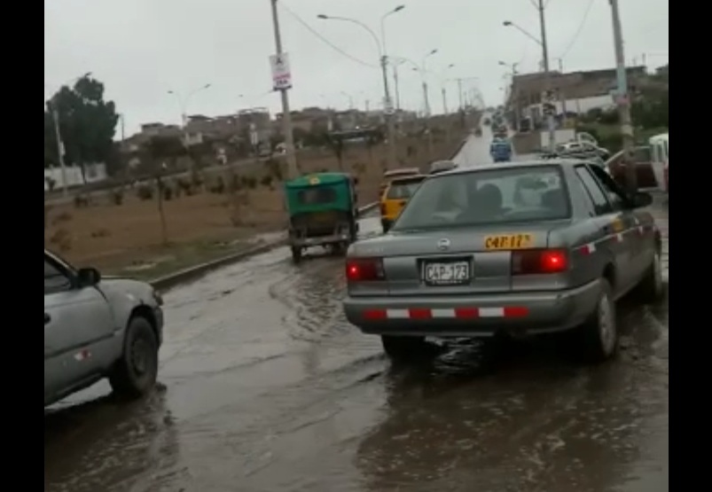 La información la dio a conocer un usuario de Panamericana Televisión, quien envío vía WhatsApp un vídeo en el que se observa la cantidad de agua concentrada en la avenida 200 millas, la cual "podría deberse a una tubería rota", señaló.