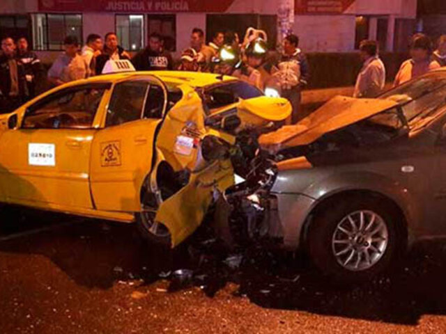 Esta madrugada se registró un violento choque entre un taxi y un auto particular en el cruce de la avenidas Argentina y Universitaria en el Cercado de Lima.