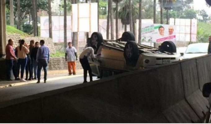 Volcadura de auto deja un herido en la bajada de Av. Armendáriz