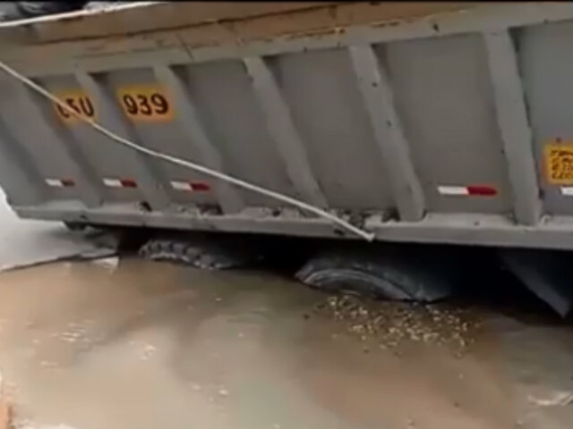 Un camión que transitaba por la Avenida Matellini, en Chorrillos, terminó atrapado en un enorme forado ubicado a la altura de la cuadra 5 de la importante vía distrital.