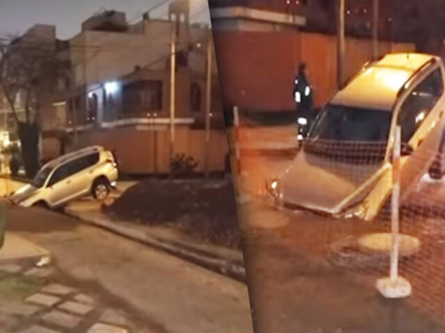 Camioneta cae en zanja realizada por Sedapal en San Borja
