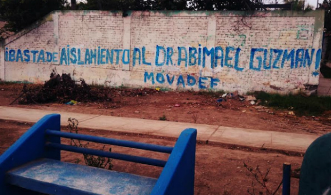 Allí se pudo leer frases como: "¡Basta al aislamiento de Abimael Guzman!" y "¡Cierre del Penal Militar de la Base Naval del Callao", ambas de la autoría de MOVADEF, considerado el brazo político de la organización terrorista.