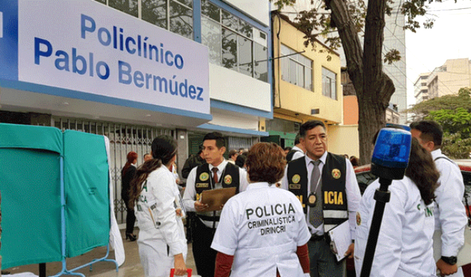 Presunto caso de suicidio. Una mujer de aproximadamente 50 años murió tras lanzarse del noveno piso del policlínico del Seguro Social de Salud (EsSalud), Pablo Bermúdez, ubicado en el distrito de Jesús María.