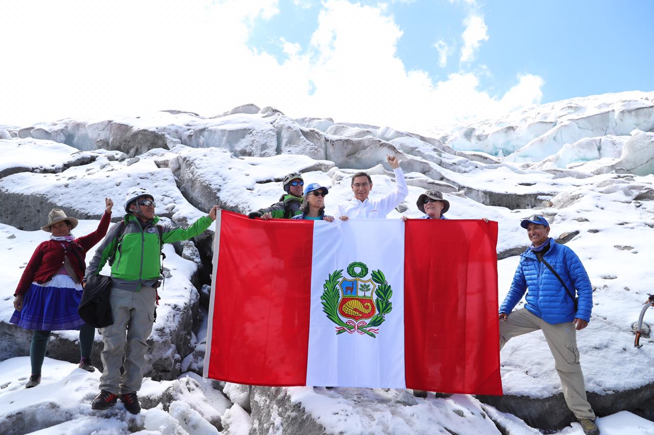 El presidente Martín Vizcarra visitó a la expedición científica en el Nevado Huascarán, provincia de Yungay, región Áncash, donde destacó las investigaciones que realizan el Instituto Nacional de Investigación en Glaciares y Ecosistemas de Montaña (Inaigem), en conjunto con científicos de Ohio State University.