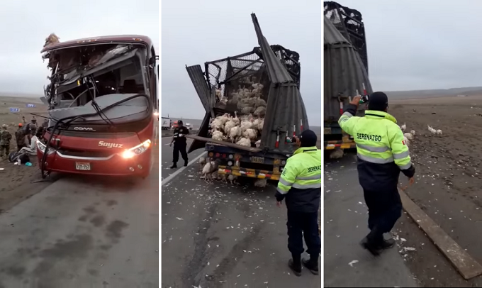 Cañete: al menos 4 heridos tras aparatoso choque entre bus y camión repleto de pavos
