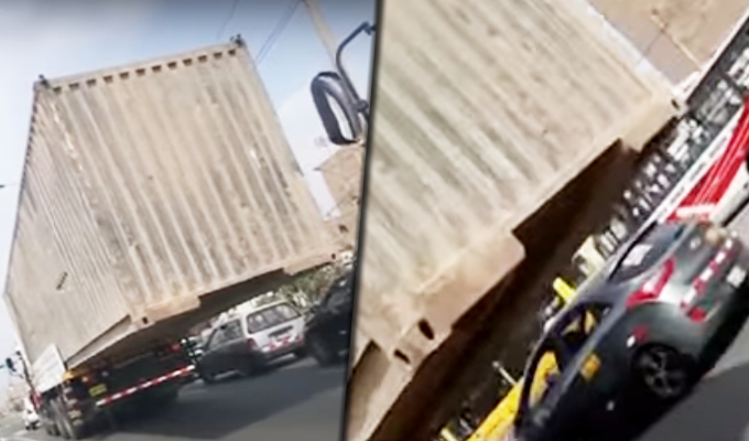En el Callao, las pasajeras de un auto particular registraron como era trasladado de manera irresponsable un enorme container que era mucho más grande que la tolva del camión donde era llevado. Ante una mala maniobra por parte de este chofer o en caso se mueva para otro carril podría ocasionar un fatal accidente en la congestionada avenida Argentina.