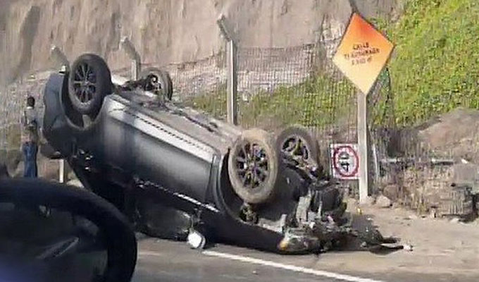 El vehículo de color plomo terminó con las llantas hacia arriba, el moderno auto se estrelló contra un poste que indicaba "40 kilómetros por hora" como máximo. El suceso provocó un gran congestionamiento vehicular.