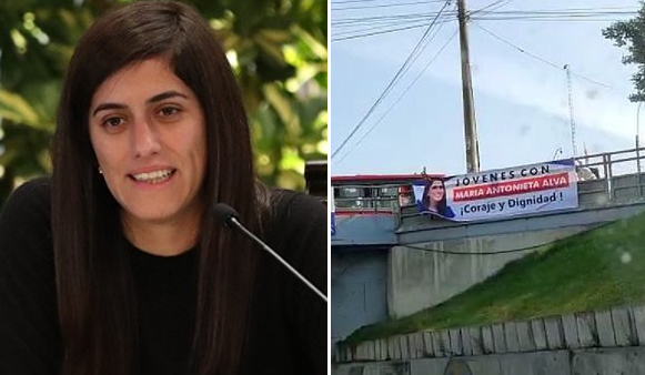 Cabe señalar que dichas pancartas con la frase “Jóvenes con María Antonieta Alva ¡Coraje y dignidad!" no llevan la firma de alguna organización.