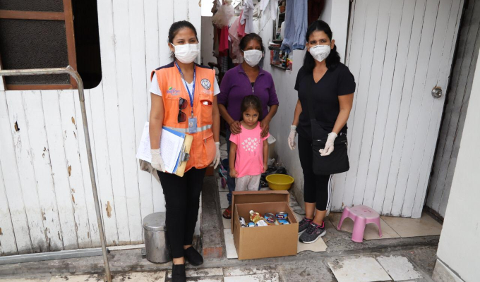 Personal de la comuna junto a las Juntas Vecinales, representantes de la iglesia del distrito y personal de la Policía Nacional del Perú, hicieron entrega de 625 canastas recorriendo casa por casa.