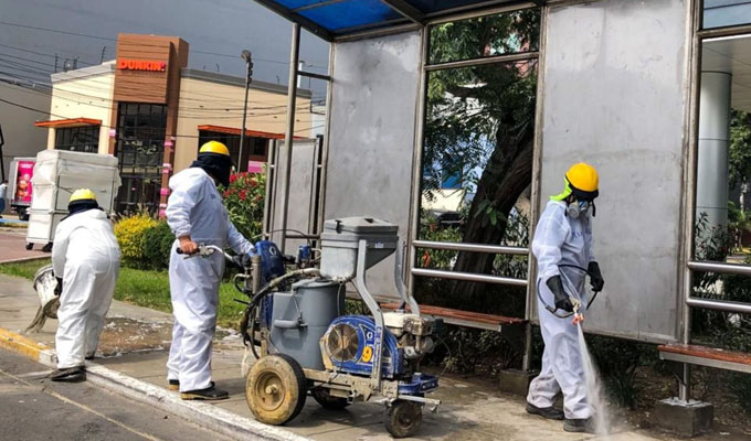 Covid-19: municipio de Lima desinfecta paraderos de la avenida Javier Prado