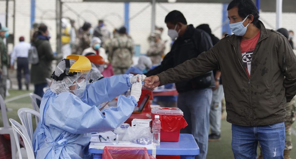 El Ministerio de Salud informó esta mañana que las brigadas de la Dirección de Redes Integradas de Salud Lima Centro realizaban pruebas rápidas para descartar contagios de coronavirus a 136 comerciantes del mercado "Mariscal Cáceres" ubicado en San Juan de Lurigancho.
