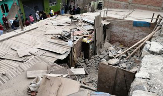 El derrumbe del techo del segundo piso se produjo a las 9:00 a. m. La madre del hombre, Rosa Rioja, quien logró salir a tiempo del inmueble, señaló que su hijo tendría la mitad de su cuerpo inmovilizado tras el desplome, pidió ayuda para la reconstrucción de su vivienda.